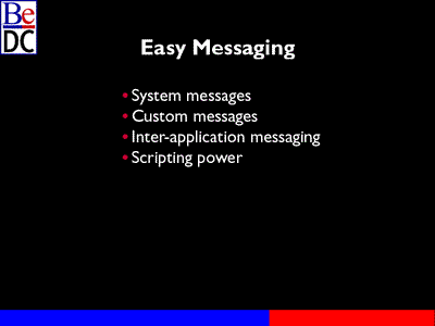 Mr. Wright: Let me get to the last bit here. I keep talking about all these messages that are getting passed around and message handlers and message cues, but you really need to know about the object that we use in that implementation and that's a BMessage. So what do you get in a BMessage, why do you need this BMessage?