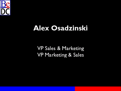Mr. Paterson: I'd like to introduce Alex Osadzinski. And to do that I would like to just explain something that we do at Be. We have a number of us that people often refer to as Demo Gods, and we throw that term about nowadays. It is totally devalued. But there really, you know, as they say in the movies, "There can be only one."