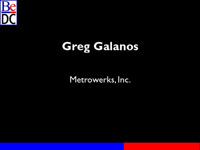 Mr. Galanos: I'd like to thank Alex and Jean-Louis for having me here today. There is a lot of similarities between Metrowerks and Be. We've been working together now for many, many years, since the introduction of BeOS. And the two engineering organizations really, really, really get on really well together.