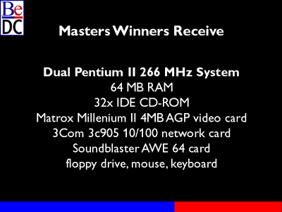 What we are trying to do with these awards is to recognize people who have made some commitment to producing Be software. And that software actually, you know, spans a number of categories. We often promote the BeOS as the media OS and you might expect that we would award awards to people doing digital video, digital audio and those types of applications. And we do, for example, Studio A, in the last set of Masters Awards won a Master Award.
