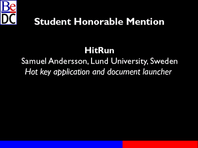 Then we also give awards to students in college and high school. So that category, the idea there is to promote development of the BeOS applications early on, hopefully we get those experienced developers as they move into the professional world.
