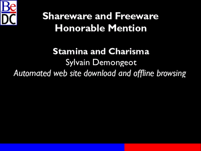 Going on to the shareware and freeware category, we have two honorable mentions in that category as well as two Masters winners.