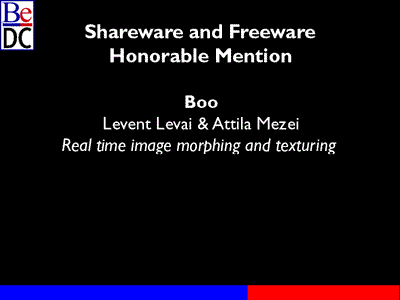 The second shareware freeware honorable mention goes to Boo by Levent Levai and Attila Mezei. A great realtime image and morphing application. That says nothing about what the application does. The only way you can appreciate Boo is if you play with it. Let me bring that up.