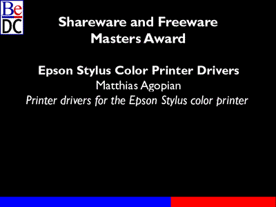 All right. Shareware and freeware, we have one more Masters winner. The Epson Stylus color printer drivers by Matthias Agopian.