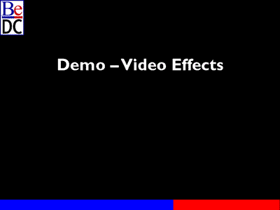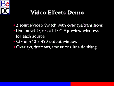 The video effects demo was the grand finale of the video demos yesterday. The intent of this program was to demonstrate a two source video switch with various overlay and transition effects.