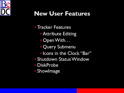 One of the significant end user applications to features, much of that is the Tracker itself. You can now direct the Tracker through scripting mechanisms to make changes to files and locations and so forth, its appearance and behavior.