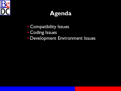 Basically we're going to talk over various issues, compatibility between PR2, PowerPC, R3 and specifically PowerPC and x86, some coding issues, some development environmental issues. We'll go ahead again and start with compatibility issues.