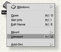 You can also unmount a disk by repeating the process you went through to mount it: Pop open the desktop context menu, go to the Mount command and select the (checked) disk. The Mount command, in this case, really means "unmount".