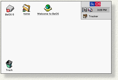 When you boot BeOS for the first time, you see a desktop that looks like this: