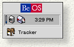 In the upper right corner of the desktop is the Deskbar. This is the BeOS roster of system services and applications, as explained in detail in "The Deskbar." |