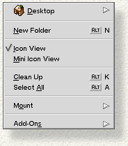 Icon View and Mini Icon View tell the desktop to display large or small icons. The mode that's currently selected is checked.