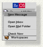 Open Mail Folder opens the /boot/home/mail folder.