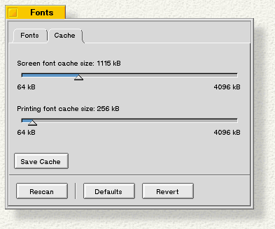 Click the Cache tab to set the size of your font caches: