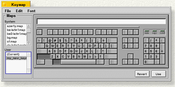 You can customize a keymap by using the second mouse button to drag a character key from one position to another. When you do this, all the modifier mapping tables move with the key.