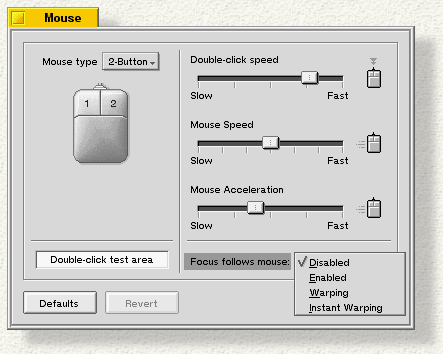 menu), and lets you set the Mouse acceleration