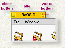 The title tab at the top of the window displays the name of the window. Typically, this is the name of the file or folder whose contents the window is displaying. The title tab also contains a close button on the left and a zoom button on the right.