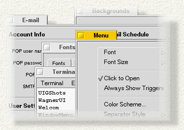 Many windows can be open but only one window can be "active"--this is the window that responds to your actions, such as pressing keys on the keyboard. The active window is the one with the yellow title tab, and is frontmost. The title tabs for all other "non-active" windows are gray; in the illustration, the Menu window is the active window.