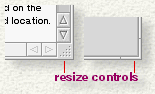 Resizing. To resize a window, drag the lower-right corner of the window frame. Most windows (such as the one shown above) have a partially dimpled "resize square," while others have a "broken border" resize control. The two types of resize control are shown below.