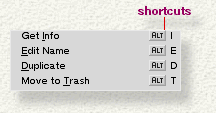 BeOS menus can also be operated from the keyboard, through shortcut keys and trigger letters.