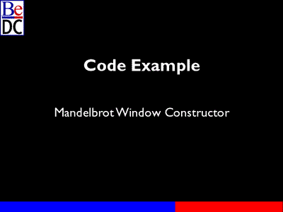 So here we're -- we've got an overridden BView. This code is straight out of the Mandelbrot demo and the sample code for that is on the CD code you received before, so if you want to go back and look at this later.
