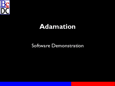 Mr. Hall: Good morning. Adamation is very pleased today to be given the opportunity to showcase our suite of applications to you developers and give you an idea where we're coming from and where we're going. We have a very limited amount of time, about ten minutes, to showcase five applications, so we're going to get right into it. Hit it, Simon.