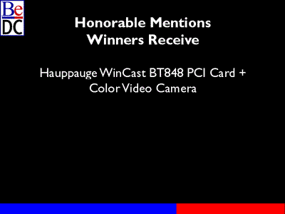 Honorable mention winners will receive a Hauppauge WinCast BT848 PCI card that comes bundled with a color video camera.