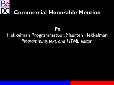 In the commercial category we have one honorable mention and two winners. I will start with the honorable mention. Pe by Maarten Hekkelman. I believe Maarten is here.