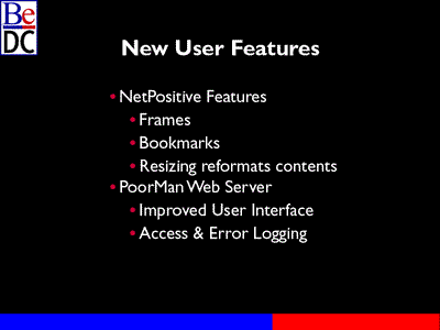 Some great new NetPositive features finally, due to user demand and general requests and the fact that nobody can get any sleep until we did it, NetPositive now has frames. Yipee! Yes, we did it. And also sometimes I think it was more requested than an Intel port, from looking at the list, at least.