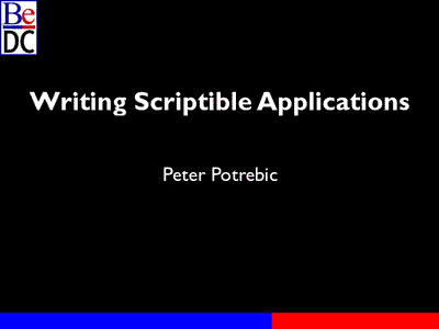 Peter Potrebic: Hi. Welcome. Welcome to this session on writing scriptable applications in the BeOS. My name is Peter Potrebic and I've been an engineer and worked at Be for the last four years and always excited to get a chance to talk with you guys about stuff that hopefully excites me as much as it excites you guys.